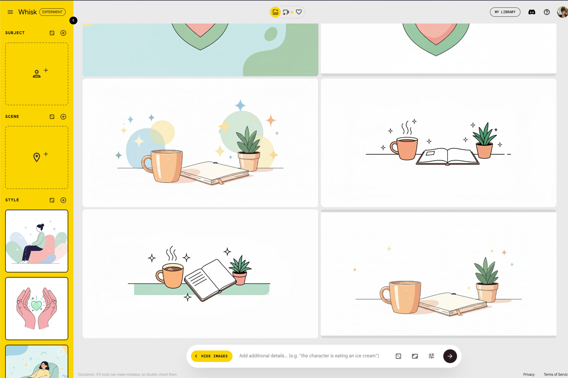 Google Whisk: just drag in a subject, scene and style image. No complex prompting needed.